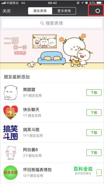 这个界面可以看到朋友们下载的表情包,可以选择下载同款,点击右上角的工具管理符号进行整理表情包。