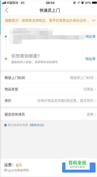 信息填完后,就可以看到需要寄件的费用了,选择到付或者寄付,然后付款就行了。