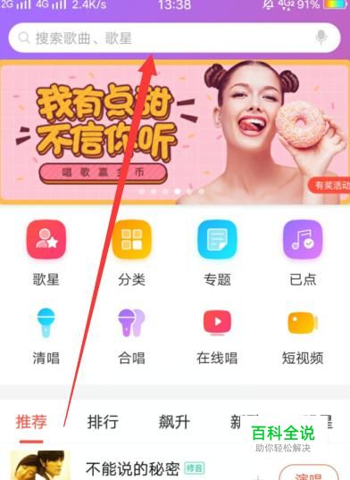 进入之后,在图示位置搜索想要下载伴奏的歌曲,如图所示。