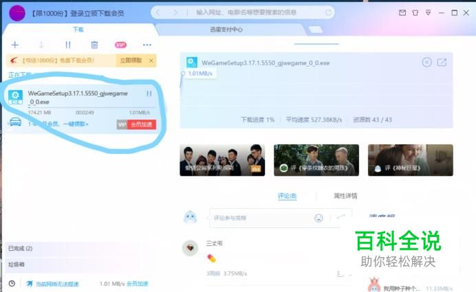 在进入迅雷后可以看到迅雷下载的速度还是比较慢的,我们要将它提速