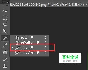 然后看左侧工具栏的剪裁工具里面,点击“切片工具”