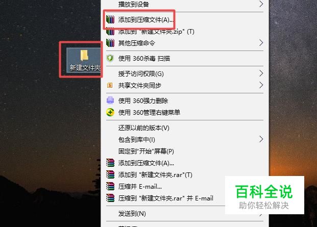 首先,我们找一个我们想要发送给别人的文件夹,然后我们右击选择添加到压缩文件;