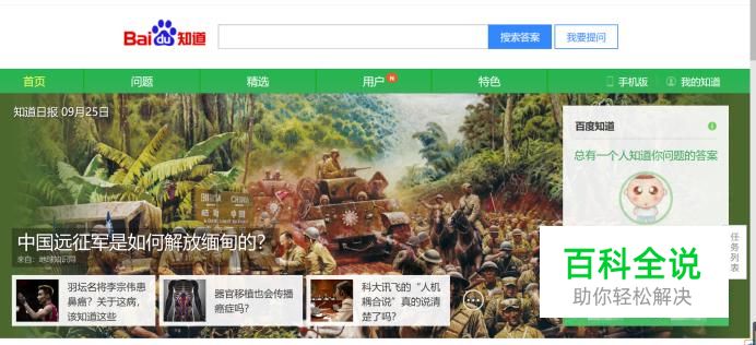 首先在百度上搜索“百度知道”,点开“百度知道”的链接,进入主界面。