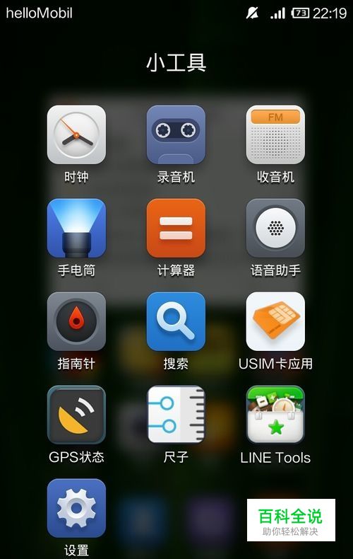 首先找到手机中的“设置”。小编把“设置”放在了“小工具”文件夹下,一般情况下大家可能放在桌面。找到“设置”后打开它。