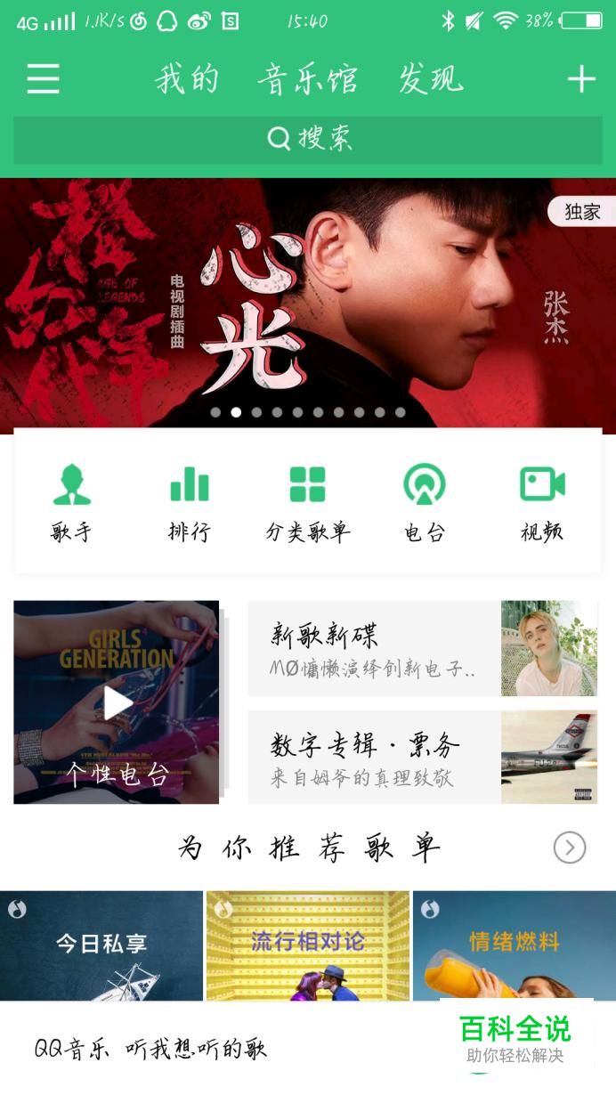 首先打开手机QQ音乐这个app,如图1所示。进入QQ音乐后你可以看到一个新的界面,如图2所示。