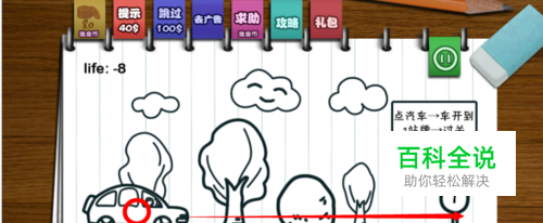 提示狭路相逢勇者胜意思就是谁的胆子大谁就胜利,大石头可以移动,只要点击汽车跟石头拼了就可以了,汽车开到大石头直接把大石头撞走,到2号站牌过关!