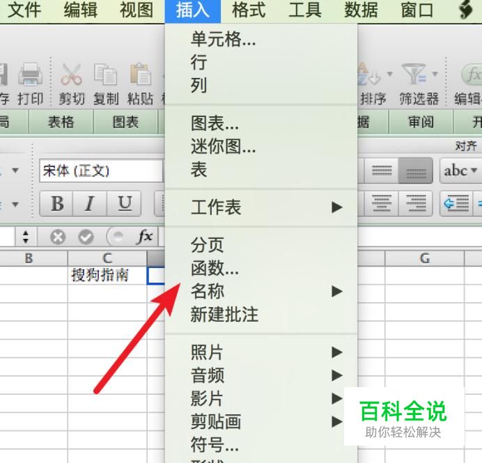 点击插入菜单里的‘函数’选项。