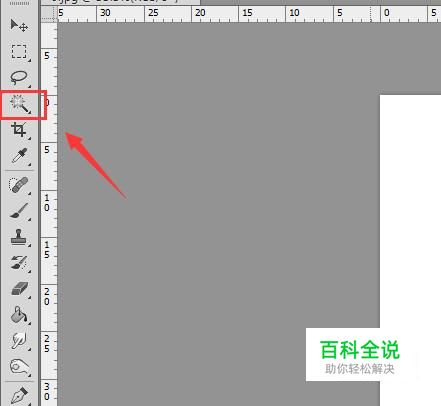 首先我们使用ps将我们的图片打开,然后在工具箱内找到魔术棒工具,如图所示: