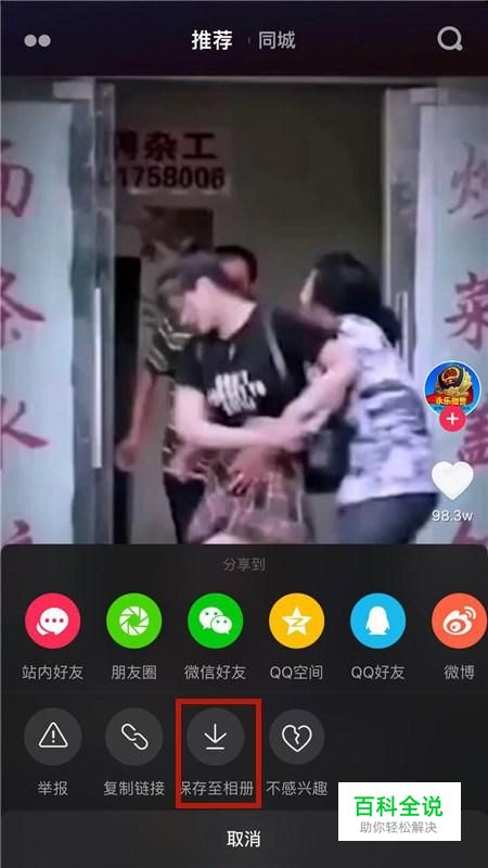 然后选择一个视频,并点击右侧的分享图标,如下图所示。