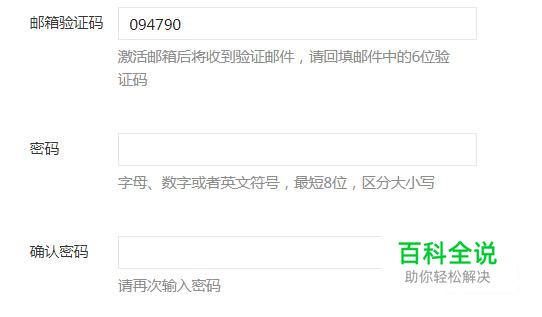 然后输入邮箱验证码并输入两次我们的密码,如下图所示。