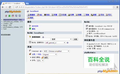 成功登录后界面如下图,现在可以看到左侧红色圈圈中的数据库名称了,不成功的检查下数据库帐号及密码是否正确。