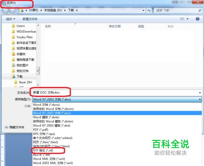 RTF格式是较为通用的。我们还可以将Word文档,另存为“.rtf”形式,如图所示。