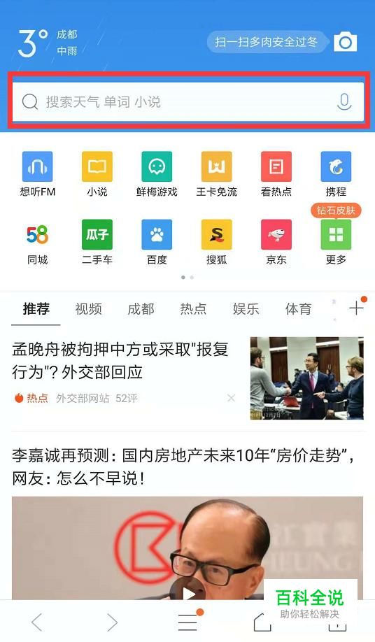 打开手机QQ浏览器(此处以安卓手机为例),点击搜索栏。