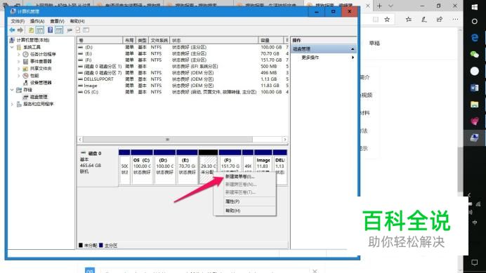 这时会在下面一栏里看到一个未分配的空间,选中,右击选择【新建简单卷】