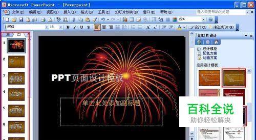 PPT页面设计模板的技巧,如何将第一张与其余页面的设计模板不一样,有些人就反应不来,如此简单的操作。如题目:将第一张页面的设计模板设为“Balance”,其余页面的设计模板设为“Fireworks”
