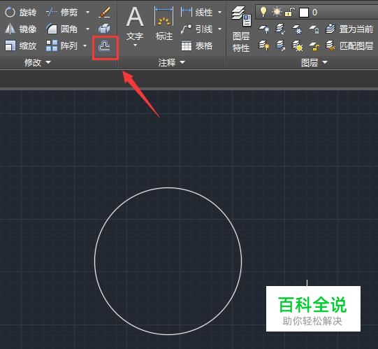 选择圆形在绘图区里绘制一个圆形,然后在修改菜单里找到偏移选项,如图所示: