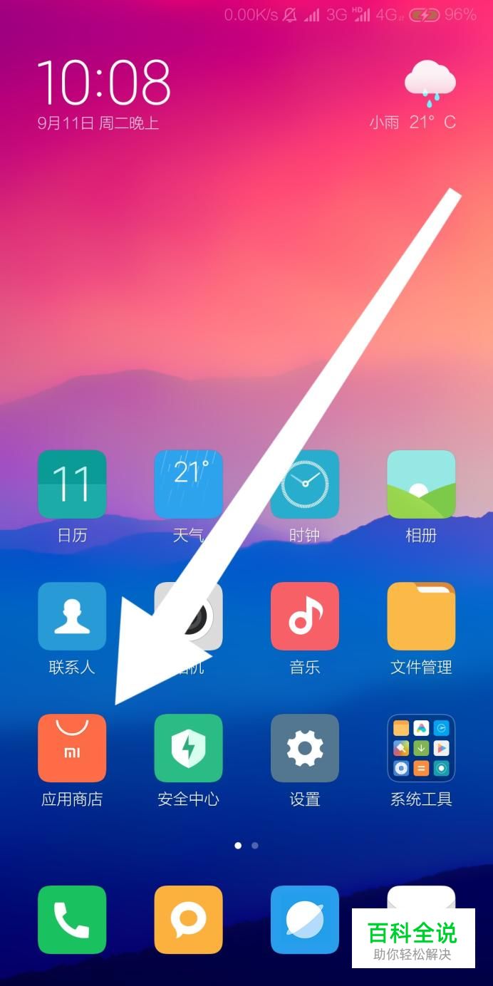 首先找到小米手机自带的“应用商店”,点击进入。
