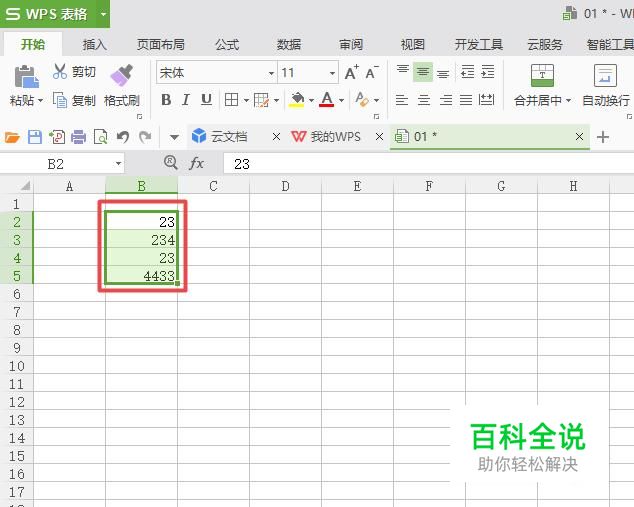 首先,我们打开我们电脑上面的wps表格,然后我们在单元格中输入一些数字,之后我们选中这些单元格;