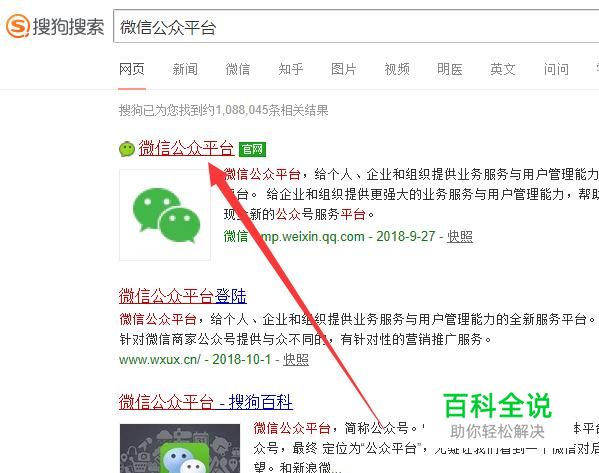 进入之后,搜索“微信公众平台”,点击并进入,如图所示。