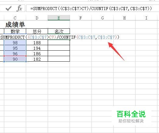 输入好函数之后我们按下回车键这样就得到了排名的结果了,如图所示: