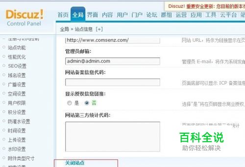 操作步骤!点击:全局-站点信息-向下拉-看到关闭站点,点关闭,保存。OK 操作步骤!点击:全局-站点信息-向下拉-看到关闭站点,点关闭,保存。OK
