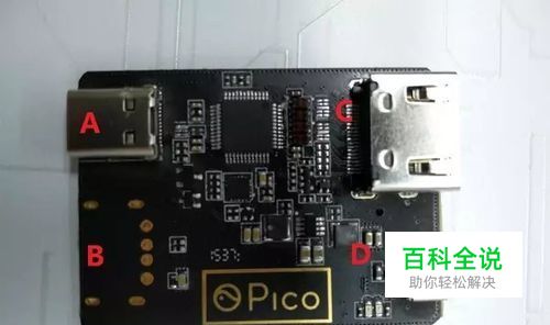 A:U Type-C接口,用于连接超级头盔视频接口 B:U Type-B(标准U)接口,用于连接超级头盔电源线(图中为样品) C:HDMI 1.4接口(母口),用于连接其他设备 D:Micro U接口,用于连接电源,为开发板及超级头盔供电