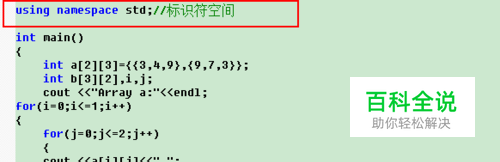 int a[2][3]={{3,4,9},{9,7,3}}; //给二维数组赋初始值 int b[3][2],i,j; //定义二维数组 cout <<"Array a:"<<endl; for(i=0;i<=1;i++) //二维数组b逐个赋值