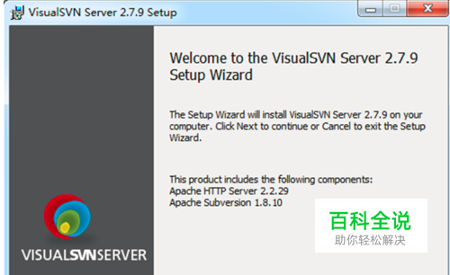 点开上面的VisualSVN连接,下载VisualSVN server,下载完成后双击安装,如下图:
