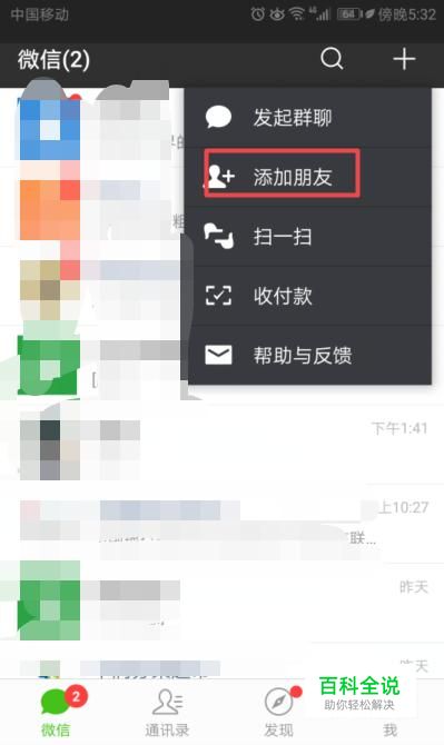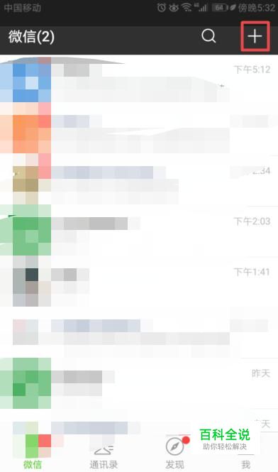 首先,我们打开我们的手机,然后我们打开我们手机桌面上的微信,进入微信后,我们点击右上角的添加按钮;