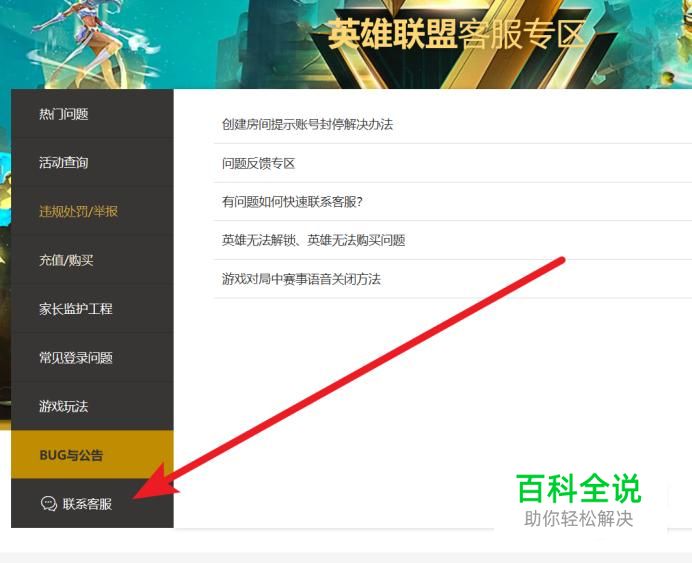 首先在电脑端,进入英雄联盟官网,并在上方找到自助系统,并进入在线客服页面。