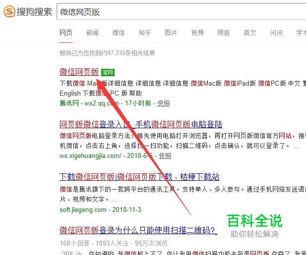 进入之后,搜索“微信网页版”,点击并进入,如图所示。