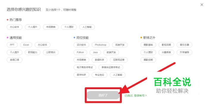 接着再新的页面中让你选择你感兴趣的项目,选择好点击下方的选好了。如图。
