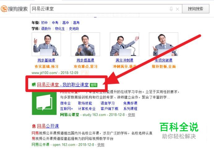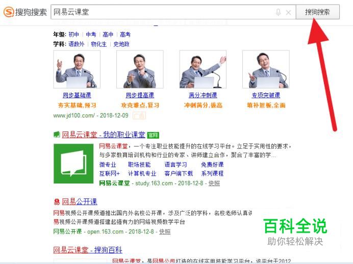首先打开搜狗浏览器,输入网易云课堂,点击搜索。