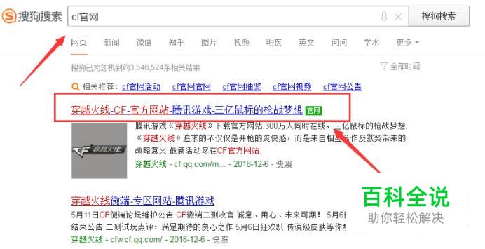 打开搜狗浏览器,输入cf官网,然后点击进入官网,如下图。
