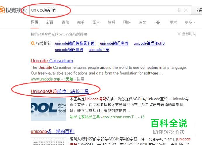 unicode编码 在浏览器中搜索【unicode编码】,如下图所示: