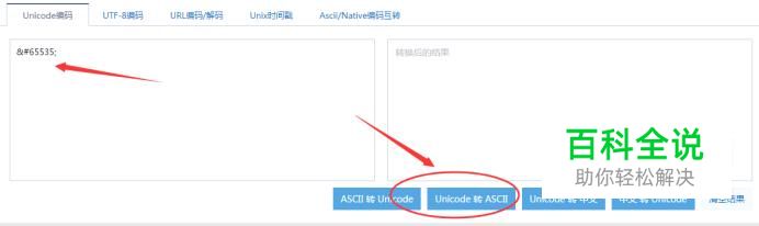 Unicode转换ASCII 然后输入"",点击【Unicode转换ASCII】,如下图所示: