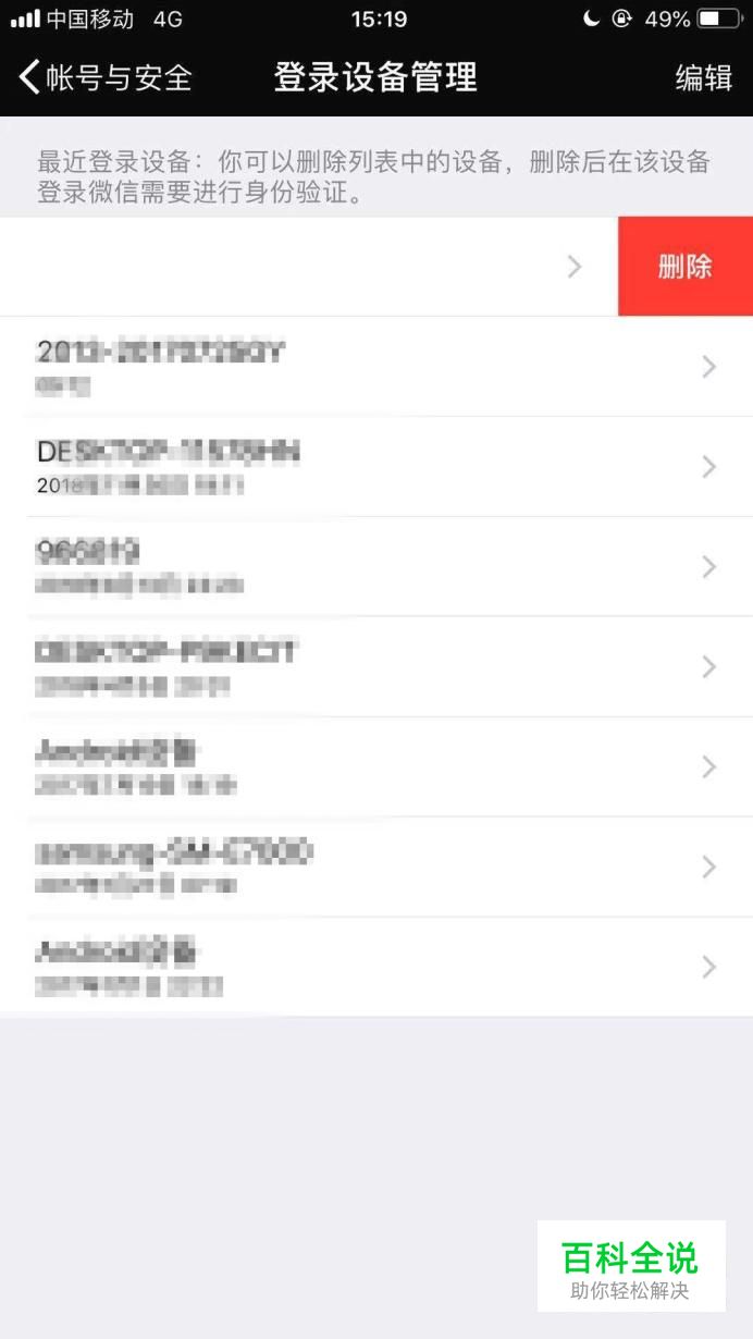 最后把不要的设备往左滑动,并点击删除就可以了。