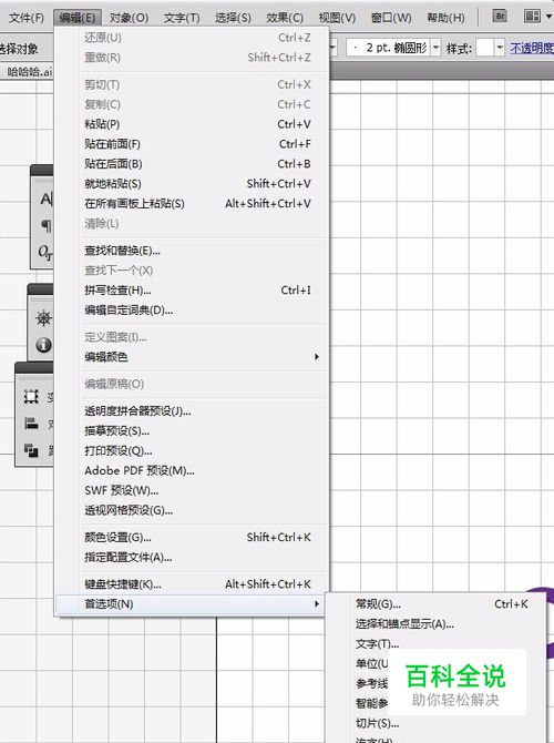 先打开AI,右上角点开编辑-点开最下面的“首选项”
