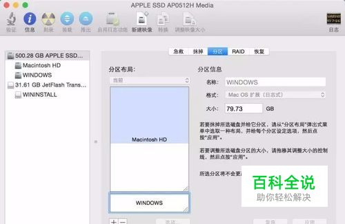 进入苹果电脑的Mac OS系统,找到“实用工具”里的“磁盘工具”,双击打开,先点本机总的那块儿磁盘,再选择“分区”,点“+”增加一个分区,右侧“大小”可以调整WINDOWS的大小,确定好分区大小之后,点击“应用”,就可以等待分区完毕了。