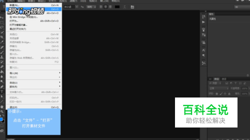 首先打开Ps,左键依次单击“文件”——“打开”,打开一张素材