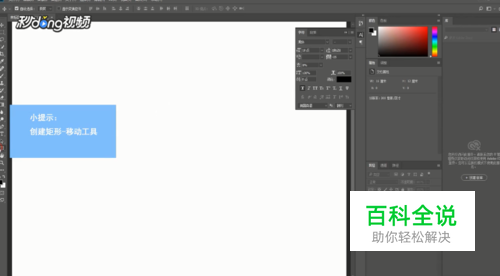 打开PS,新创建一个矩形,点击矩形工具进行创建,然后选择移动工具。