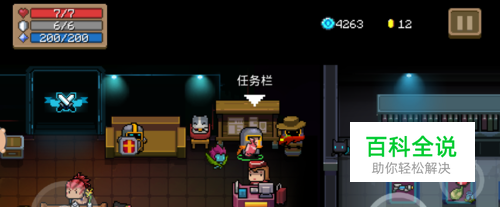 进入到更新之后的元气骑士游戏中, 我们在房间的右上角,可以看到一个新的物品——任务栏,靠近任务栏点击进入。