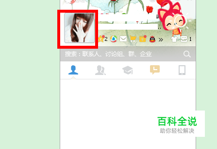 我们先登录自己的qq账号,登录成功之后我们单击自己的qq头像,qq头像在qq面板的上方,如图标红框所示。