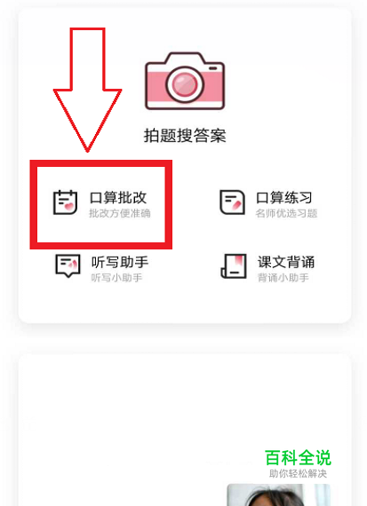 先进至作业帮的最首的起先白页内,在顶端这里就找见了‘口算批改’的形钮,依此按触开。