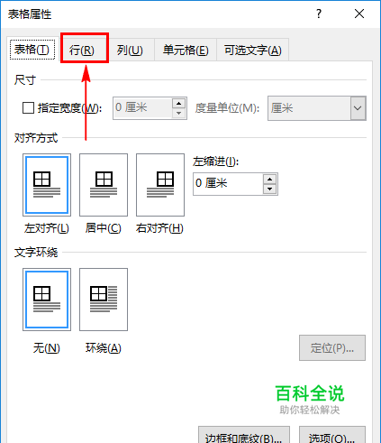 在“表格属性”对话框中选择“行”,然后点击“指定高度”,这样就可以设置表格的行高啦。如图所示: