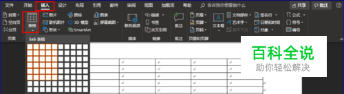 打开Word软件,点击“插入”菜单,在文档中插入一个表格。如图所示: