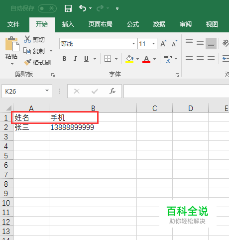 首先用Excel新建一个工资表,并在第一行输入“姓名”、“电话”等标注类别的类名。一般常见的有姓名、手机、座机等类别名称,至少要有姓名、电话这两列。