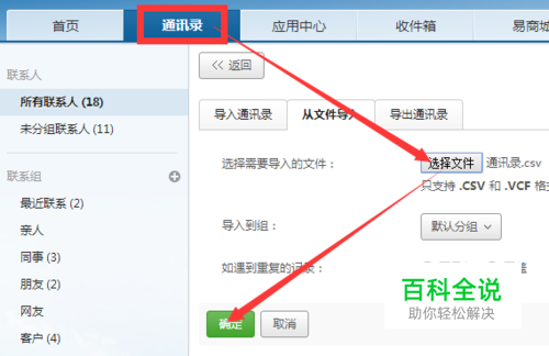 登录163邮箱,点击通讯录,然后点导入,选择我们刚保存的csv文件。 导入成功后,可以直接看到客户信息,待校对无误后,全选我们刚导入的数据,然后点【导出】,格式选择为vCard格式也就是我们需要的vcf格式通讯文件。