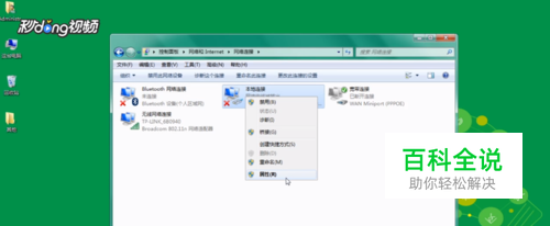 找到“更改适配器设置”,在本地连接上右击,选择“属性”。