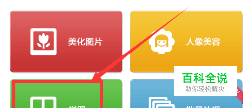 1、我们先下载安装美图秀秀软件,然后把它打开,在首页点击打开“拼图”选项,如图所示。